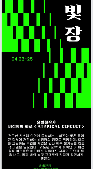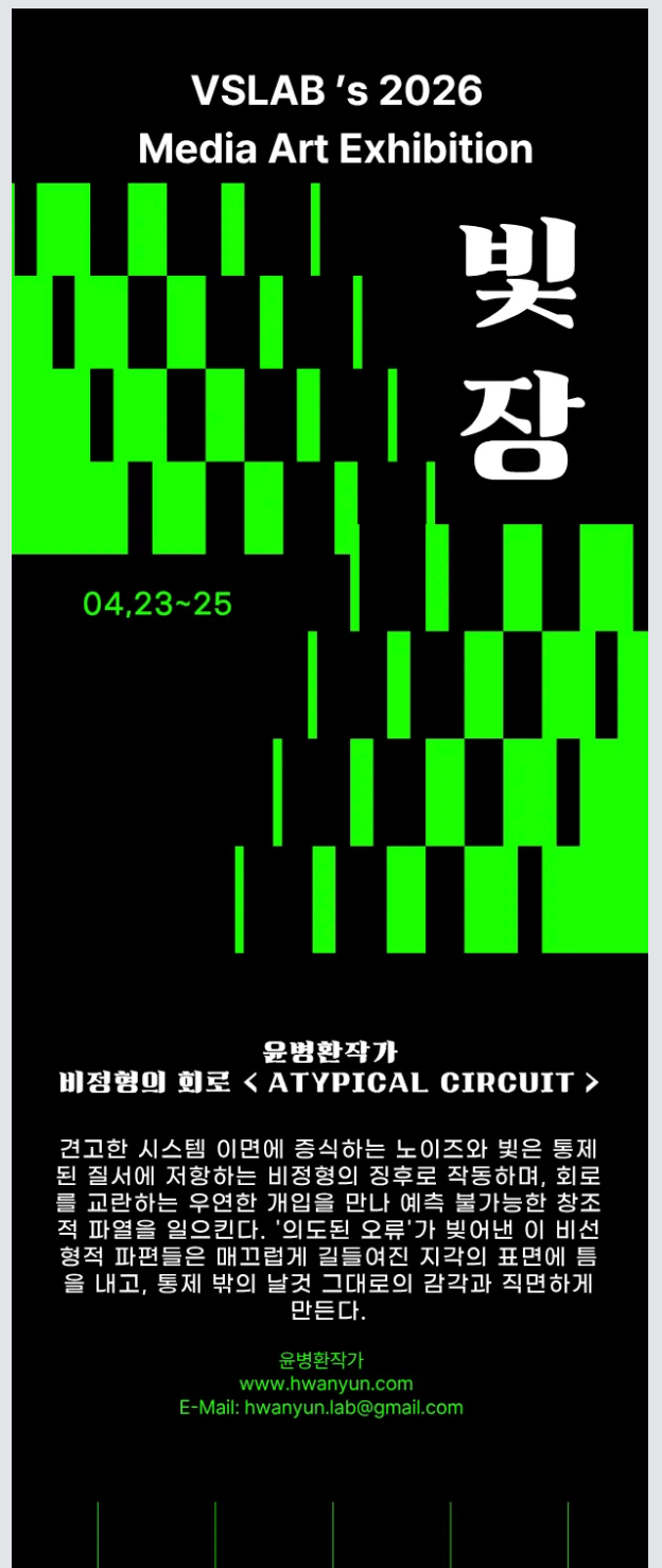 이 작품은 통제된 시스템과 그 이면에 존재하는 필연적인 붕괴 사이의 보이지 않는 긴장을 탐구합니다. <비정형의 회로>에서 노이즈는 더 이상 오류가 아닌, 하나의 생생한 언어로 작동합니다. 초음파 센서를 통해 관객의 존재가 감지되는 순간, 설치물은 예측 불가능한 디지털 글리치와 전율하는 물리적 케이블을 통해 숨을 쉽니다. 이 반(半) 마법적이면서도 기괴한 조우는 우리 디지털 구조 속에 숨어 있는 유령들과의 대화를 유도하며, 논리와 혼돈이 충돌하는 숨겨진 차원을 드러냅니다.